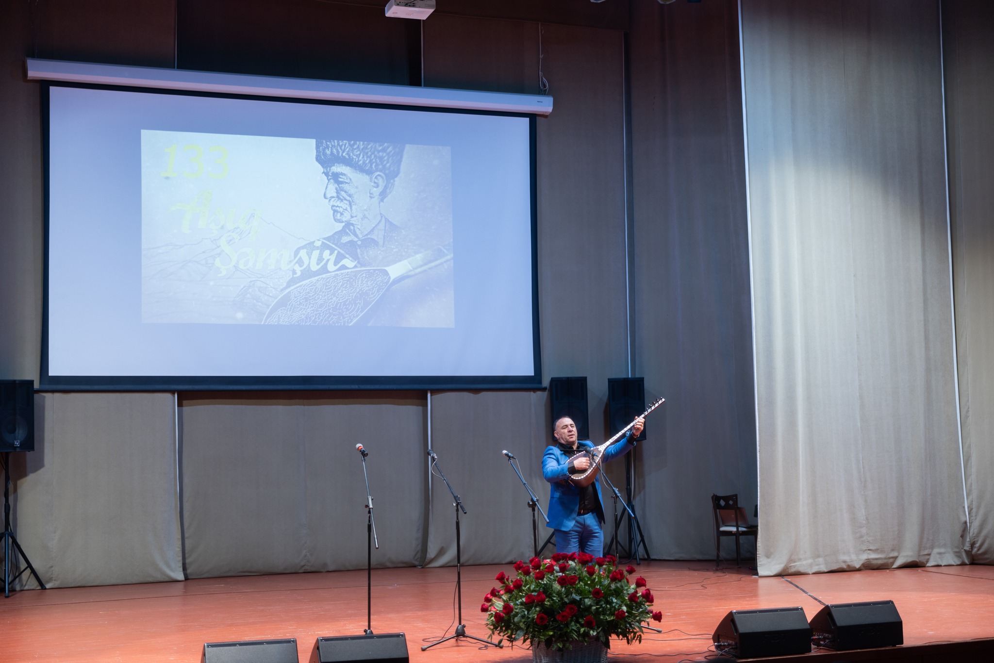 Daha sonra respublikamızın tanınmış mədəniyyət işçilərinin ifasında Aşıq Şəmşirin şeirlərinə bəstələnmiş aşıq havaları və muğamlar səsləndirlimişdir.