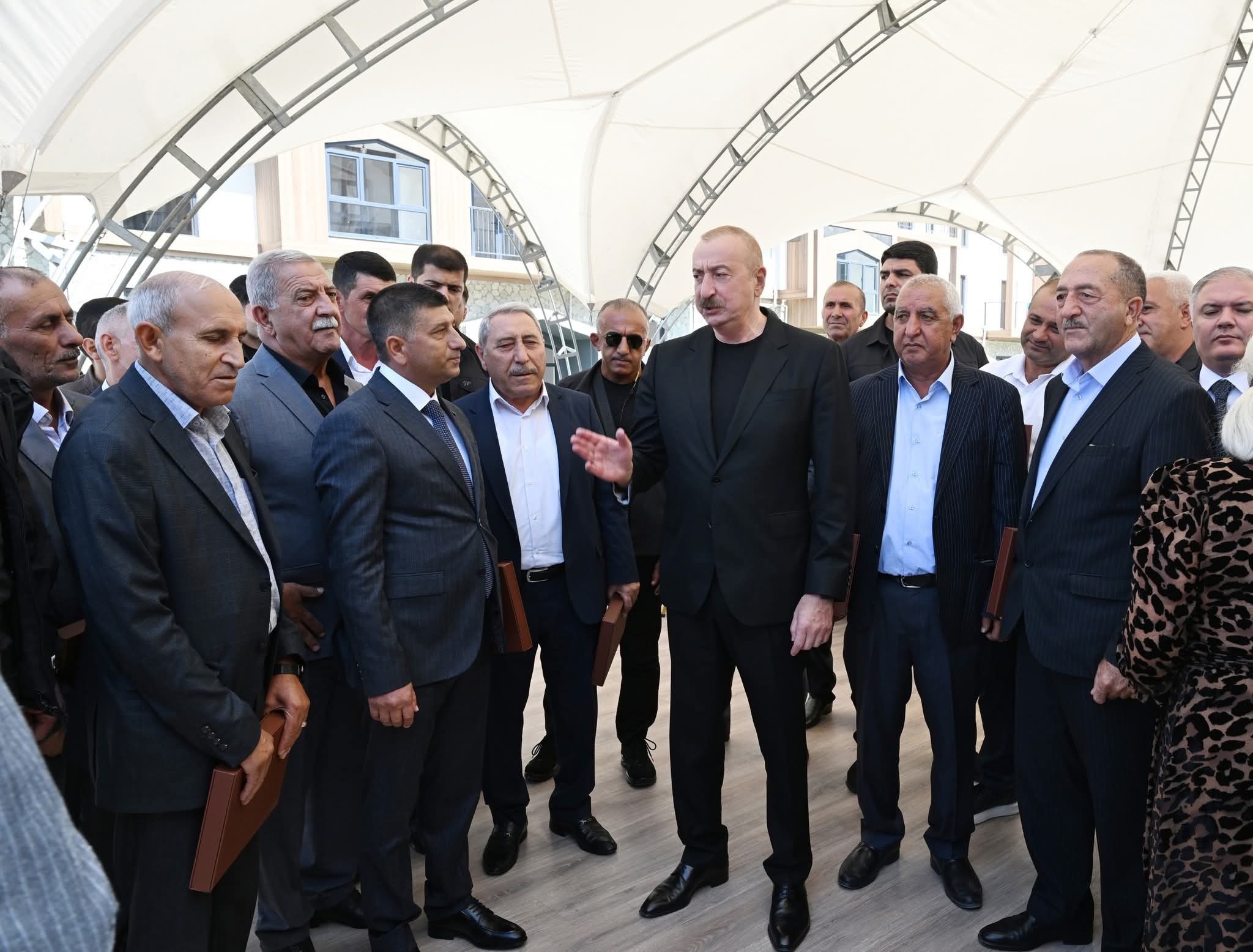 Bizim işimiz quruculuqdur. Onlar bütün şəhər və kəndlərimizi viran qoyublar. Kəlbəcər şəhərində bir dənə salamat bina qalmamışdır. Kəlbəcərin heç bir kəndində bir dənə də bina qalmamışdır. O, vəhşilik idi. O, insanlığa sığmayan hərəkət idi və bunu bir nəfər yox, 10 nəfər yox, kütləvi surətdə edirdilər. Onlar gərək bu məsələlərlə məşğul olsunlar, hansı cəmiyyətdə yaşayır Ermənistan? O cəmiyyət ki, işğal dövründə talançılığı özü üçün əsas gəlir mənbəyi etmişdir. Bu cəmiyyət xəstədir və mən bunu açıq deyirəm. Mən heç kimi təhqir etmək istəmirəm. Biz onlara nə etmişik ki, nə pislik etmişik ki, bu qədər vəhşiliklə üz-üzə qalaq?! Bütün şəhər və kəndlər dağıdılıb, məscidlər dağıdılıb, təhqir edilib, insanlar qətlə yetirilib, öldürülüb, yandırılıb. Hətta İkinci Qarabağ müharibəsindən sonra bizdən vasitəçilər tərəfindən vaxt istəmişdilər, burada öz şələ-şülələrini yığmaq üçün. Biz hətta vaxt da verdik onlara. Nə etdilər? Yandırdılar, ağacları qırdılar. İnsan bunu edər? Axı, bunu təkcə separatçıların başçıları etməyiblər. Kütləvi surətdə ediblər. Yəni, biz bilməliyik ki, kiminlə üz-üzəyik, bizim qonşumuz kimdir. Keçmişimizi heç vaxt unutmamalıyıq və ayıq olmalıyıq. Əminəm ki, bütün bu amillər imkan verəcək ki, üstünlük hər zaman bizdə olsun. Bu gün bunu yenə də deyirəm, biz qalib xalq kimi bəyan edirik. Biz o pisliyi, vəhşiliyi unutmayacağıq. Ancaq biz bundan sonra heç kimlə müharibə aparmaq fikrində deyilik. Əgər bizə qarşı hər hansı bir təhlükə çıxarsa, onda yenə də bizim dəmir yumruğumuzu hər kəs görəcək. Bu gün bu gözəl binaların ətrafında bizim görüşümüz də çox böyük rəmzi məna daşıyır. Onlar buranı dağıdıblar, biz isə qurub-yaratmışıq və sizi bu münasibətlə bir daha təbrik edirəm. Rahat yaşayın, sizə cansağlığı, xoşbəxtlik arzulayıram. Sağ olun.