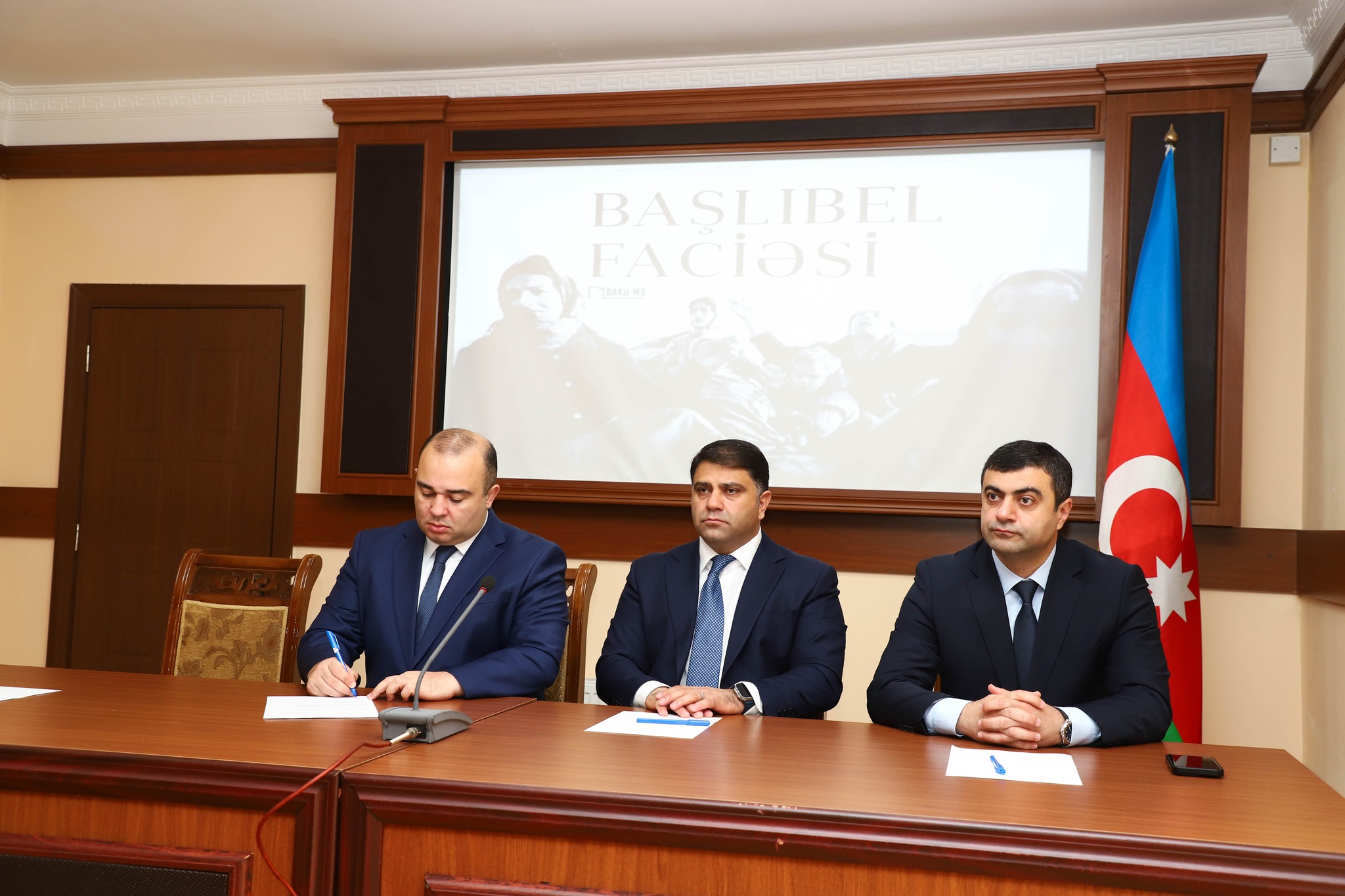 Tədbirdə çıxış edən Kəlbəcər Rayon İcra Hakimiyyətinin başçısı Azər Qocayev qeyd edib ki, dövlətimizin başçısı cənab İlham Əliyev və Birinci vitse-prezident Mehriban xanım Əliyeva daima şəhid ailələrini, qaziləri diqqət mərkəzində saxlayaraq onlara xüsusi diqqət və qayğı göstərir.Rayon rəhbəri qeyd etmişdir ki,Kəlbəcər rayonu da, erməni vandalizimindən əziyyət çəkmişdir və bu gündə rayonumuzun sakinləri bu vandalizmin ağrısını, acısını yaşayır.Kəlbəcər rayonunda ermənilər Ağdaban faciəsindən sonra Başlıbel faciəsini törətmişdir. Başlıbel faciəsi zamanı kənd sakinlərinin bir hissəsi erməni yaraqlılarından qaçaraq canlarını qurtara bilsələrdə, bir hissəsi mağaralara sığınmış və oradaca kütləvi şəkildə erməni vandalizminin qurbanına çevrilərək qətlə yetirlimişdirlər.Rayon İcra Hakmiyyətinin başçısı Azər Qocayev bildirib ki, onların ruhlarıda digər şəhidlərimizin ruhları kimi şaddır.Çünki Müzəffər Ali Baş Komandanımız cənab İlham Əliyevin gələcəyə hesablanmış uğurlu daxili və xarici siyasətinin, qətiyyətinin və əsgərlərimizin qəhramanlığı sayəsində torpaqlarımız düşmən tapdağından azad edilərək ərazi bütövlüyümüz bərpa edilmiş və həmin ərazilərdə üç rəngli müqəddəs Azərbaycan bayrağı dalğalandırılmışdır. Eyni zamanda rayon rəhbəri vurğulamışdır ki, dövlətimizin başçısı cənab İlham Əliyevin rəhbərliyi altında artıq işğaldan azad olunmuş rayonlarda, o cümlədən Kəlbəcər rayonunda da, yenidən qurma işləri başlayıb, Kəlbəcərdə sönmüş ocaqlarımız yenidən alovlanıb. Gələcəkdə digər şəhidlərimiz kimi, Başlıbel faciəsinin qurbanlarınında əziz xatirəsi qanunamüvafiq qaydada əbədiləşdiriləcəkdir.