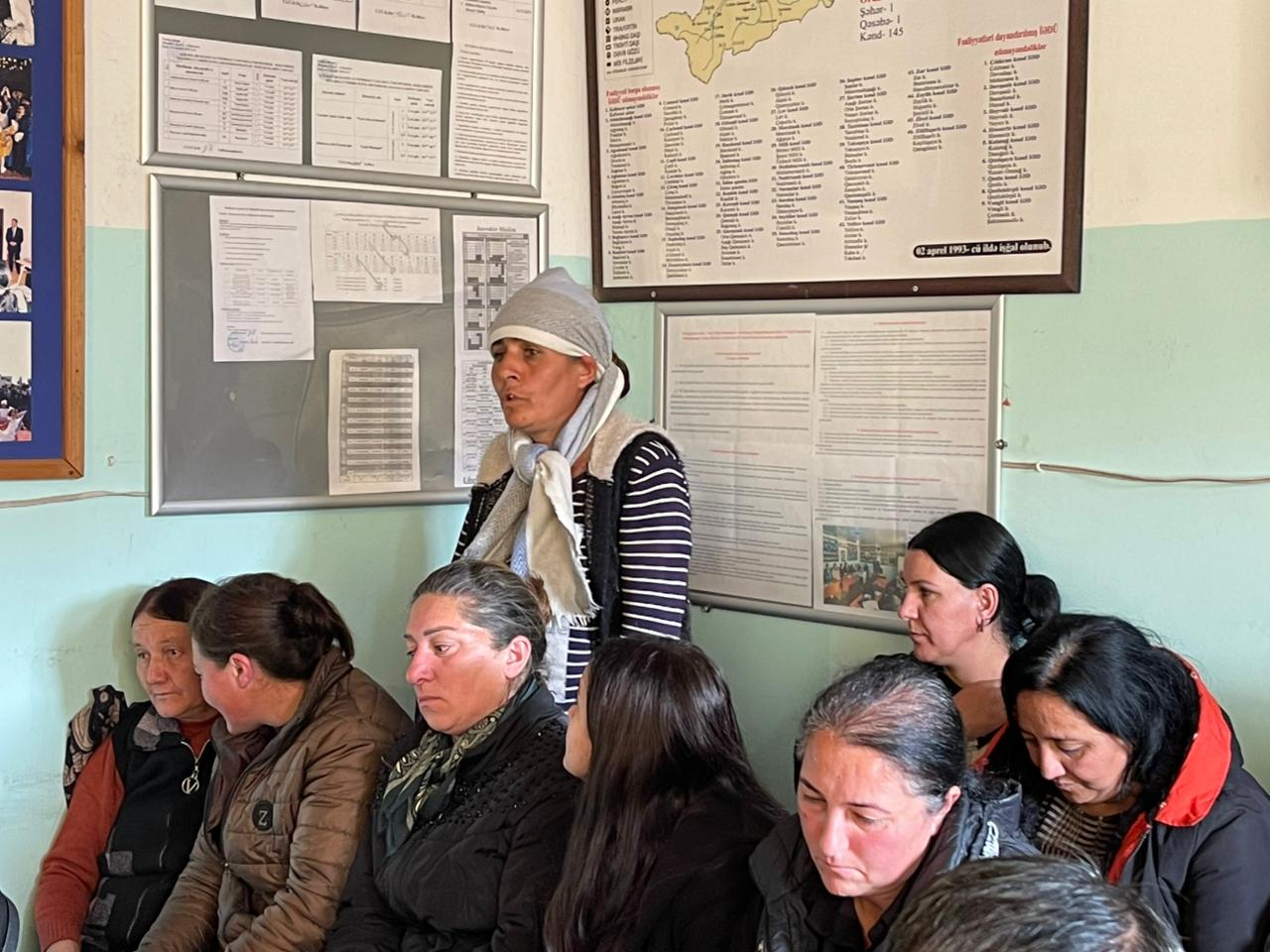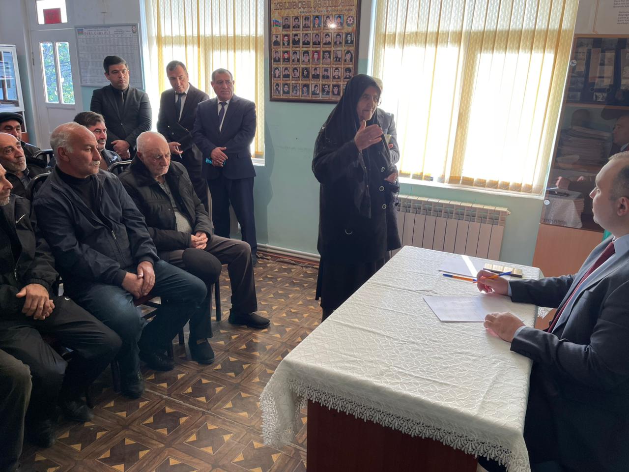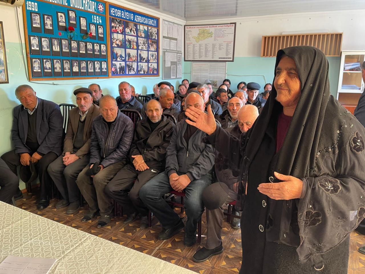 RİH başçısı Azər Qocayev səyyar görüşdə sakinlərə öncə Azərbaycan Respublikasının Prezidenti cənab İlham Əliyev tərəfindən aparılan uğurlu daxili və xarici siyasətdən, xalqımızın tarixinə “Zəfər salnaməsi” kimi yazılan 44 günlük müharibədə qazandığımız Şanlı Qələbədən, həmçinin düşmənə ağ bayraq qaldırtdıraraq qondarama dövlət qurumlarının ləğvinə, ərazi bütövlüyümüzün tam bərpasına səbəb olan lokal antiterror əməliyyatından, uğurla icra edən “Böyük qayıdış” dövlət proqramından, eləcədə əhalinin sosial müdafiəsinə və rifah halının yüksəldilməsinə yönəlmiş dövlət proqramlarından söz açmışdır.