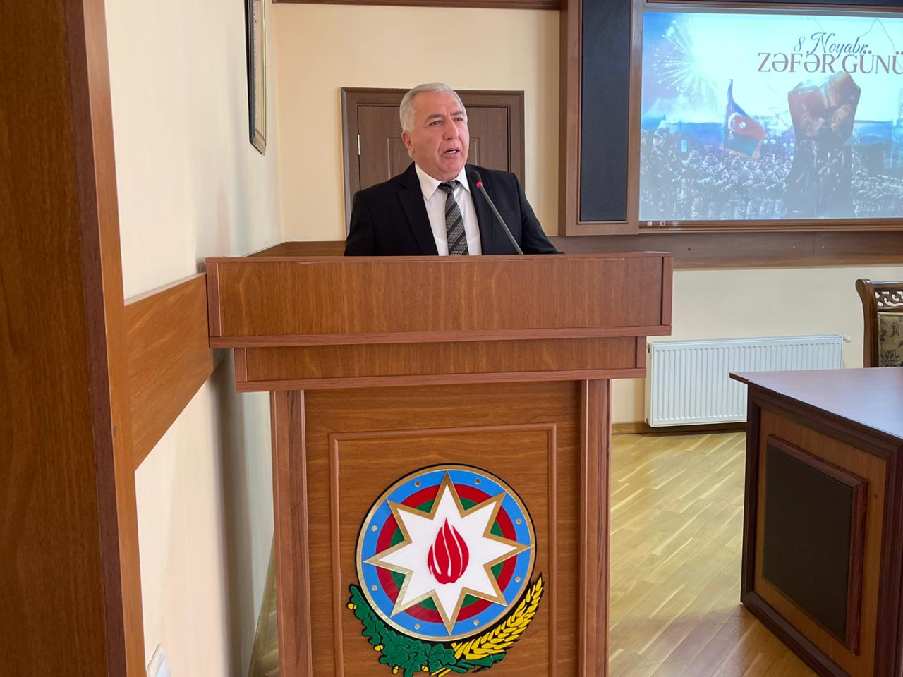 Tədbirdə çıxış edən Kəlbəcər rayon İcra Hakimiyyətinin başçısı Azər Qocayev bildirib ki, Kəlbəcər rayon İcra Hakimiyyətinin və Kəlbəcər rayon Ağsaqqallar şurasının birgə təşkilatçılığı ilə keçirilən tədbir 8 noyabr Zəfər günü ilə bağlı rayonda keçirlilən silsilə tədbirlərdən biridir. Vurğulayıb ki, Azərbaycanın uğurları Ulu Öndər Heydər Əliyevin adı ilə bağlıdır. Ölkəmizin inkişafında, ümumilikdə bütün sahələrdə qazanılmış uğurların təməlində xalqımızın Ümummilli lideri Heydər Əliyevin mütləq şəkildə müstəsna xidmətləri olmuşdur.Ulu Öndərin uzaqgörən siyasətinin məntiqi nəticəsi olaraq Azərbaycan bu gün yüksələn xəttlə inkişaf edir. Rayon rəhbəri eyni zamanda Prezident cənab İlham Əliyev tərəfindən aparılan uğurlu daxili və xarici siyasətdən, xalqımızın tarixinə “Zəfər salnaməsi” kimi yazılan 44 günlük müharibədə qazandığımız Şanlı Qələbədən və uğurlu antiterror əməliyatından bəhs edib.