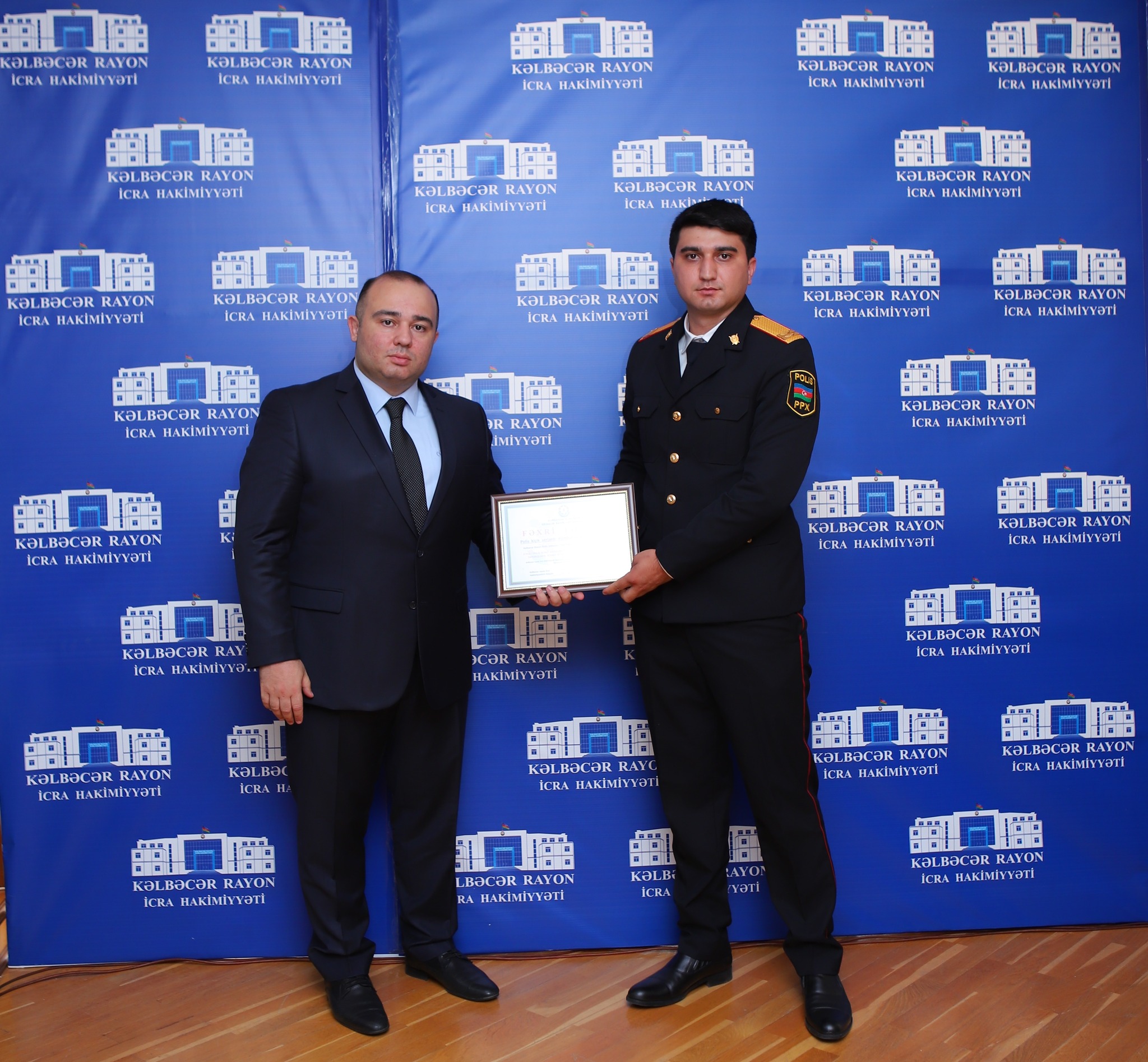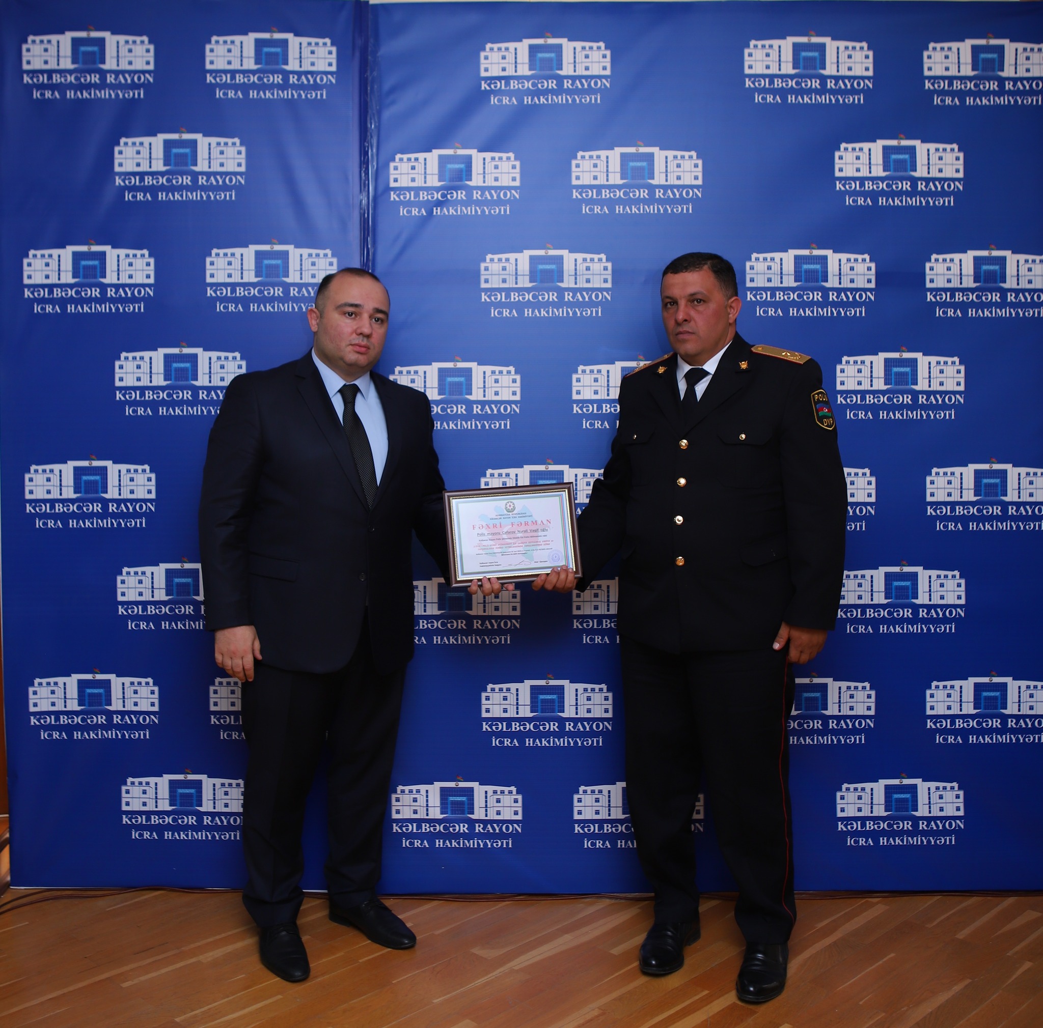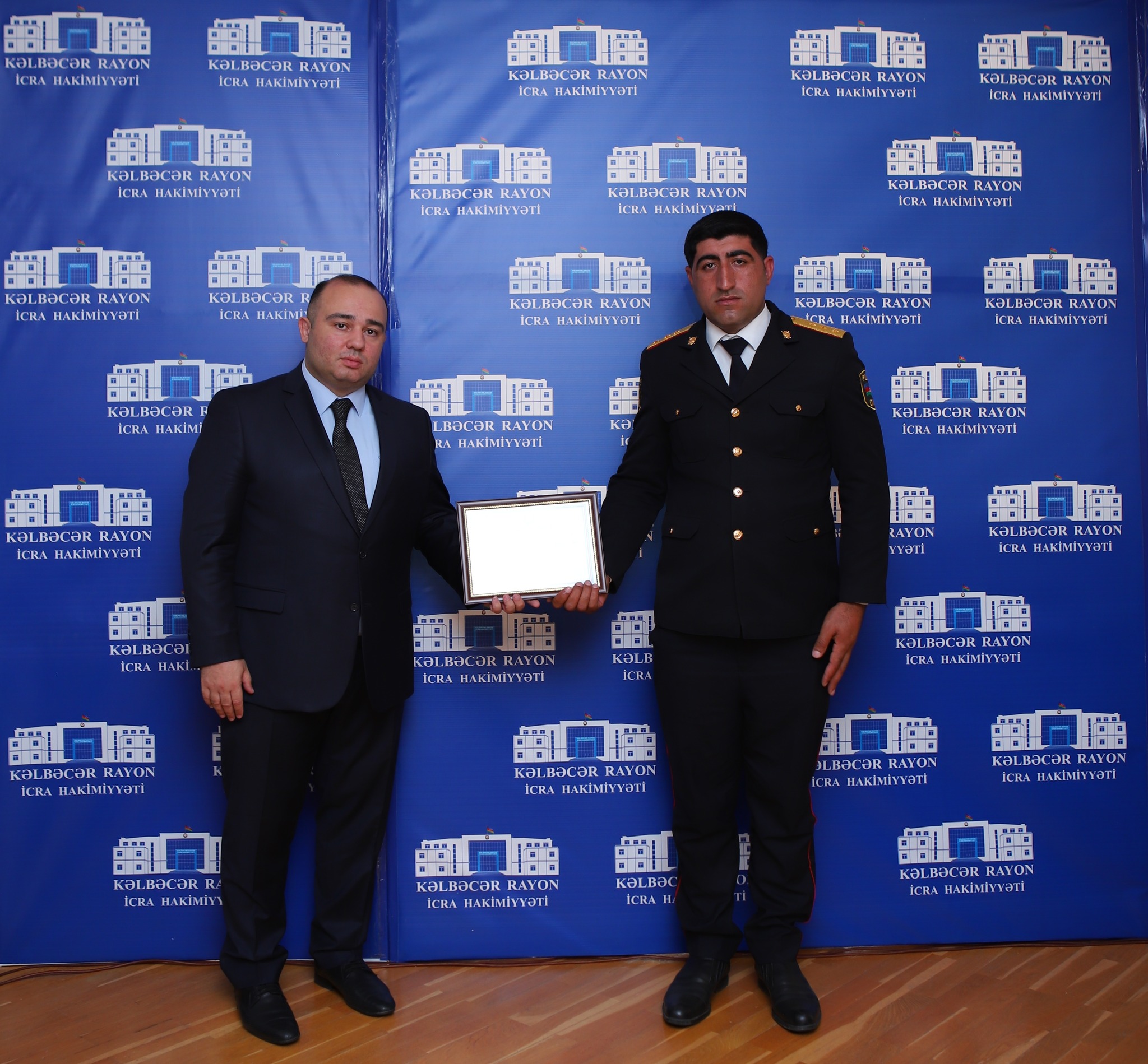 Qeyd edək ki, ictimai asayişin və təhlükəsizliyin təmin edilməsi ilə bağlı xidməti vəzifələrini yerinə yetirməkdə fərqləndiyinə görə Kəlbəcər Rayon Polis şöbəsinin bir qrup polis əməkdaşları Kəlbəcər RİH başçısının Fəxri Fərmanı ilə təltif edilib.Sonda xatirə şəkili çəkilib.